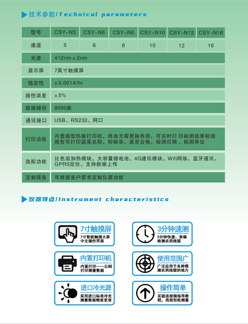 但并非所有的茶園都會(huì)用藥,面對(duì)茶葉中農(nóng)藥應(yīng)用不合理而引起的農(nóng)藥殘留超標(biāo),深圳市芬析儀器制造有限公司生產(chǎn)的新一代智能型農(nóng)藥殘留測(cè)定儀是根據(jù)農(nóng)業(yè)標(biāo)準(zhǔn)方法(NY/T 448-2001)和國標(biāo)(GB/T5009.199-2003)中的酶抑制率法,嚴(yán)格遵循《GB/T5009.199-2003蔬菜中有機(jī)磷和氨基甲酸酯類農(nóng)藥殘留快速檢測(cè)方法標(biāo)準(zhǔn)》中的規(guī)定對(duì)蔬菜中有機(jī)磷和氨基甲酸酯類農(nóng)藥殘留的快速檢測(cè)。
